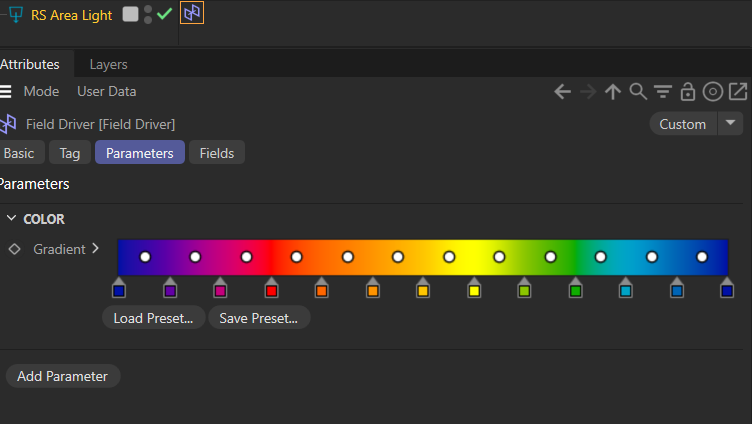 In this example we add field driver to our area light’s intensity slider.