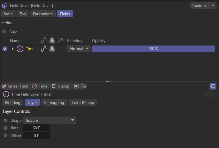 Switch to Fields tab and add your desired Field. In this example we used Time effector.