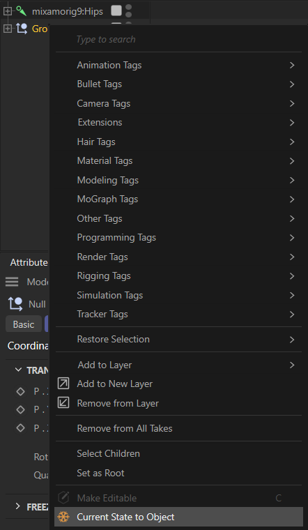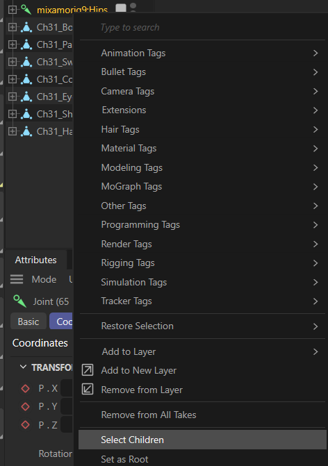 Add the Solver: Apply a Character Solver Tag to the root joint to enable retargeting with standard motion capture data.