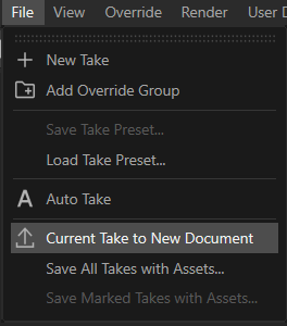 Isolate the Mixamo Take: Select the mixamo.com take in the Take System and execute “Current Take to New Document”. Close the original document without saving.