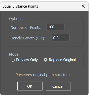 if (redrawWithEqualSpacing(path, newPath, pathStructure, options.numPoints, options.handleLength)) {